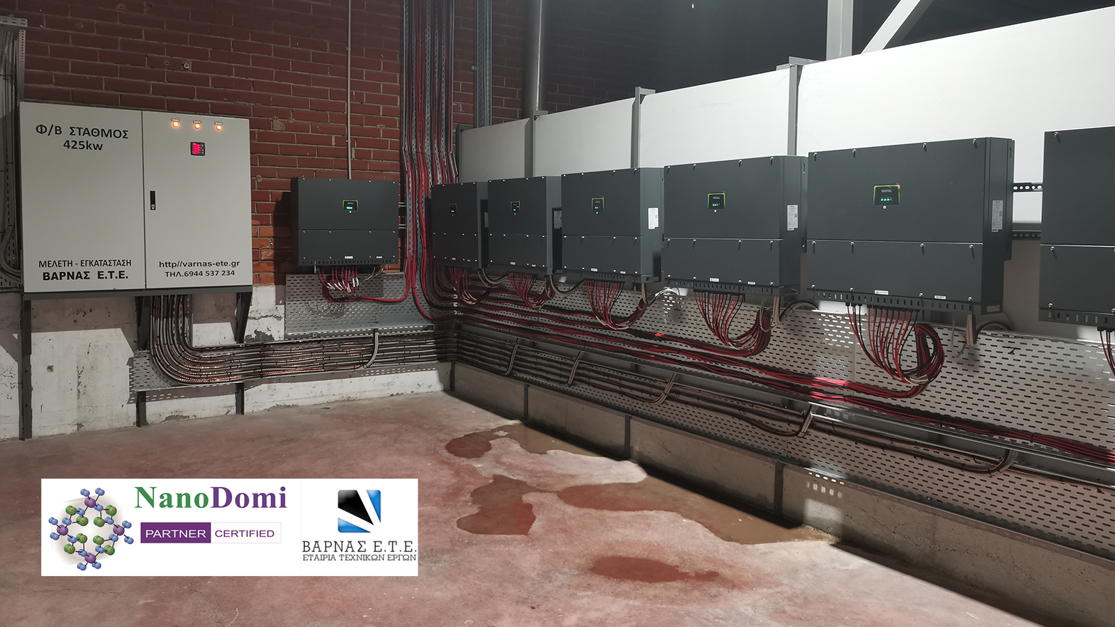 Για την κατασκευή του έργου χρησιμοποιήθηκαν προϊόντα υψηλής ποιότητας και  αξιοπιστίας. Συγκεκριμένα τα μονοκρυσταλλικά half cell πάνελ της εταιρείας AMERISOLAR 400W (αποκλειστικός εισαγωγέας NanoDomi), τα inverter KOSTAL PIKO CI60kw ενώ επιλέχθηκαν οι βάσεις αλουμινίου βιομηχανικής στέγης Alumil.
