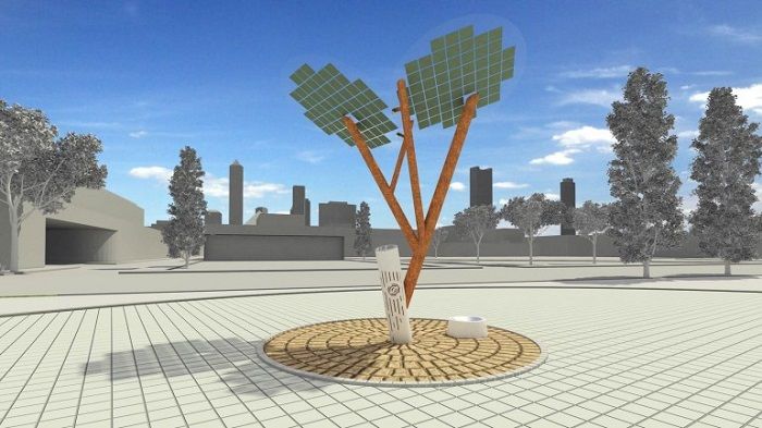 Πρόκειται για το eTree, ένα πρότζεκτ που δημιουργήθηκε από μια ισραηλινή εταιρεία που ασχολείται με τις ανανεώσιμες πηγές ενέργειας, τη Sologic. Το ηλιακό δέντρο είναι ένα έργο – παρέμβαση στο δημόσιο χώρο, που στοχεύει στην παροχή μιας νησίδας για ξεκούραση, σύνδεση στο Internet και φόρτιση ηλεκτρονικών συσκευών. Η κινητήριος ιδέα στάθηκε σαφώς η προώθηση της περιβαλλοντικής ευαισθητοποίησης και της αειφορίας, καθώς και η σύνδεση της κοινωνίας με το περιβάλλον.