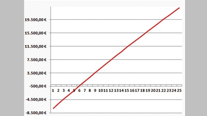 ¶ρα θα χρειαστεί να κατασκευαστεί σύστημα περίπου 5.5kW, προκειμένου να μηδενιστεί το κόστος ρεύματος. Το σύστημα αυτό στοιχίζει περίπου 8.500¤ με ΦΠΑ και τέλη σύνδεσης.
