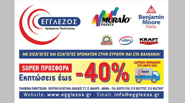 Η εταιρεία «ΕΓΓΛΕΖΟΣ ΧΡΩΜΑ Α.Ε.», δραστηριοποιείται στον τομέα των Οικοδομικών Χρωμάτων και βερνικιών τα τελευταία 35 ΧΡΟΝΙΑ, με 7 καταστήματα στην Αθήνα, στο Ναύπλιο και πάνω από 200.000 πελάτες. Εισάγει και αντιπροσωπεύει αποκλειστικά στην Ελλάδα κορυφαίους οίκους χρωμάτων της Αμερικής και της Ευρώπης καθώς και κορυφαίες ελληνικές εταιρείες όπως οι ΒΙΒΕΧΡΩΜ, VITEX, KRAFT, DUROSTICK, BENJAMIN MOORE και NEW LINE διαθέτοντας την πλήρη γκάμα των προϊόντων τους και καλύπτοντας όλες τις ανάγκες της εγχώριας αγοράς με χρώματα: